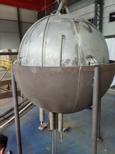 球罐特點:該項目中的球罐具有容積大、設(shè)計溫度高、載荷變化頻繁、運行工況復(fù)雜等特點,是目前國內(nèi)儲熱容積最大的疲勞容器之一